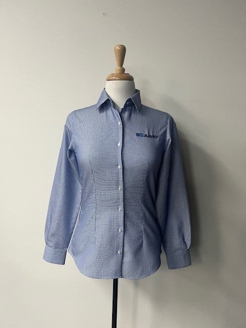 Ladies Seaway long sleeve embroidered shirt. Garment is 100% cotton.